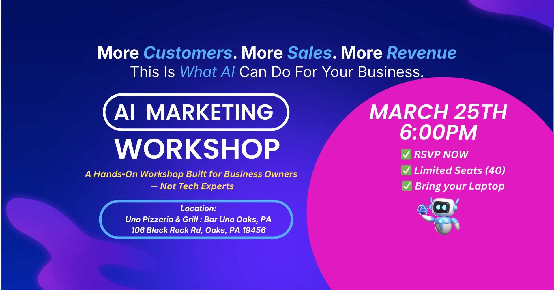 A hands-on AI marketing workshop aimed at helping local business owners grow their customer base and increase revenue will be held on March 25, 2026, at Uno Pizzeria & Grill in Oaks.
