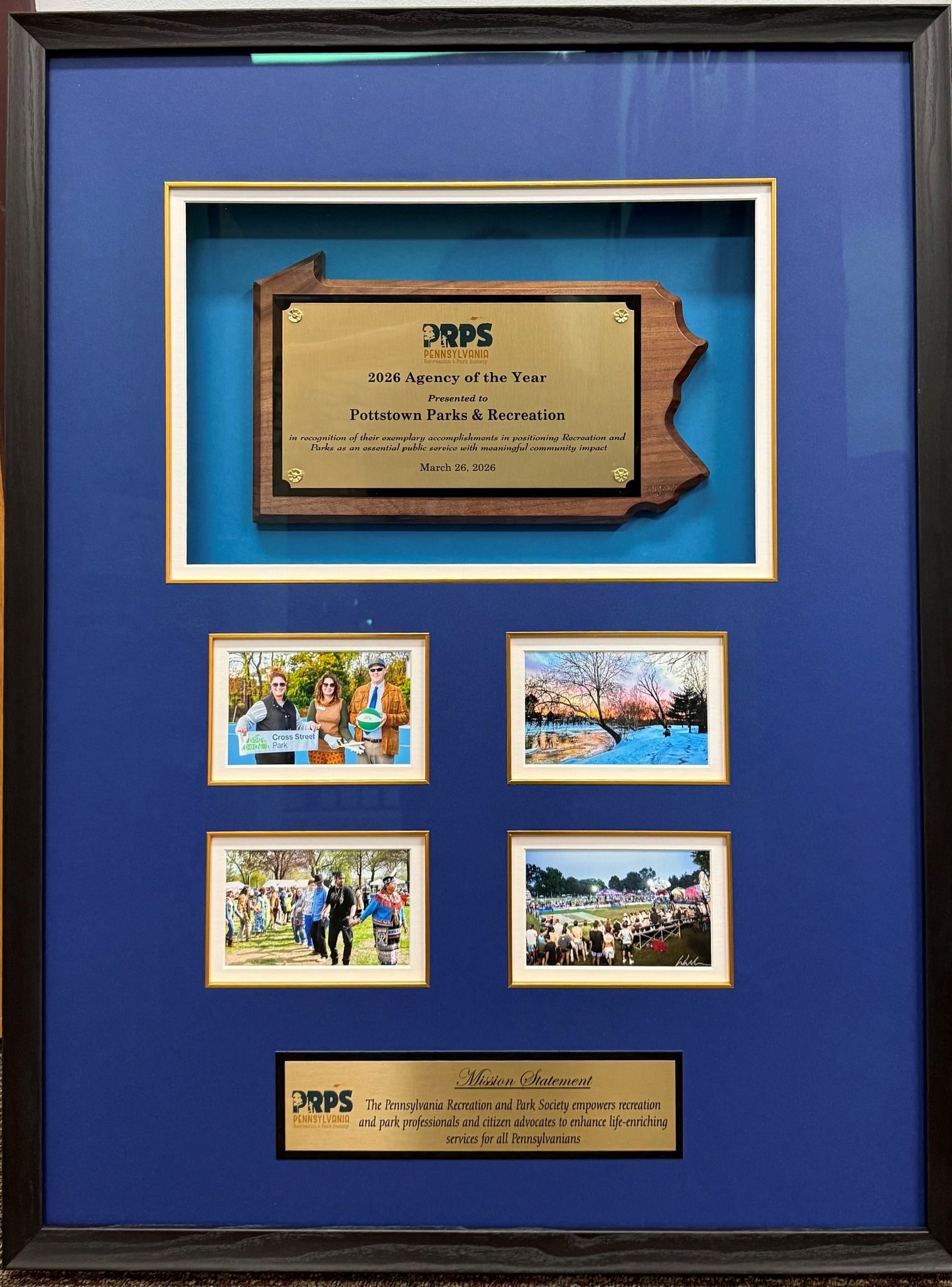 The Pottstown Parks and Recreation Department has been recognized at the state level, earning the 2026 Agency of the Year award from the Pennsylvania Recreation and Park Society (PRPS).