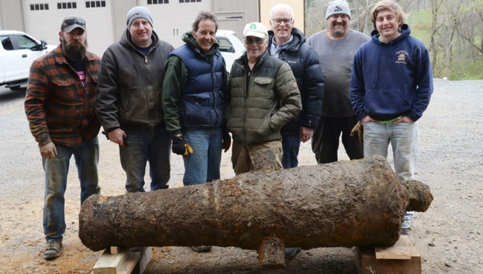 The cannons, originally cast at the historic Warwick Furnace, were found buried just beneath the ground by the French & Pickering Creeks Conservation Trust. Each iron cannon measures more than seven feet in length and weighs over 4,500 pounds.