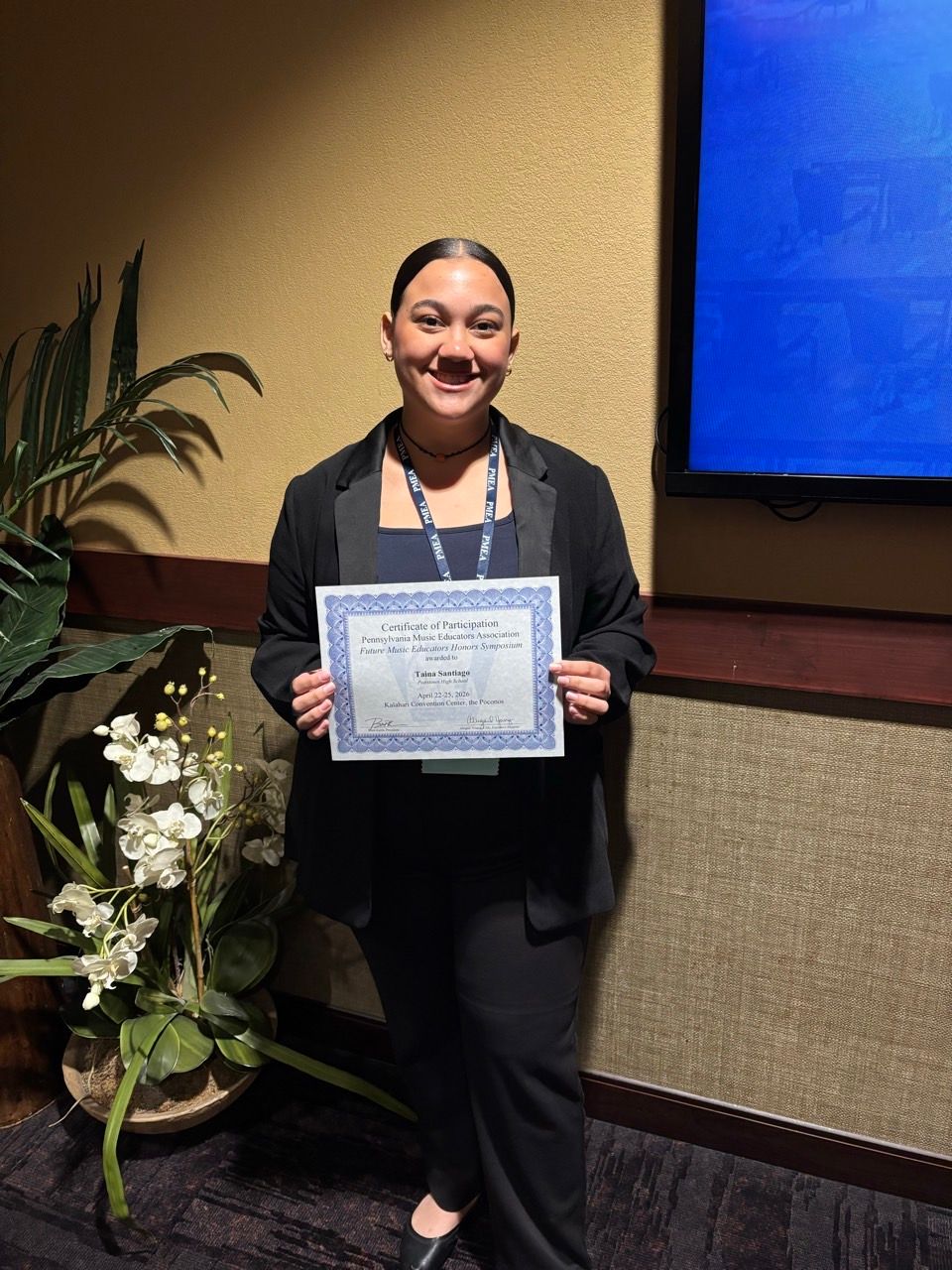 Taina Santiago, a member of the Class of 2026, was selected as one of just 15 students across Pennsylvania to attend the Future Music Educators Honors Symposium, held during the Pennsylvania Music Educators Association conference at the Kalahari Resort in the Poconos.