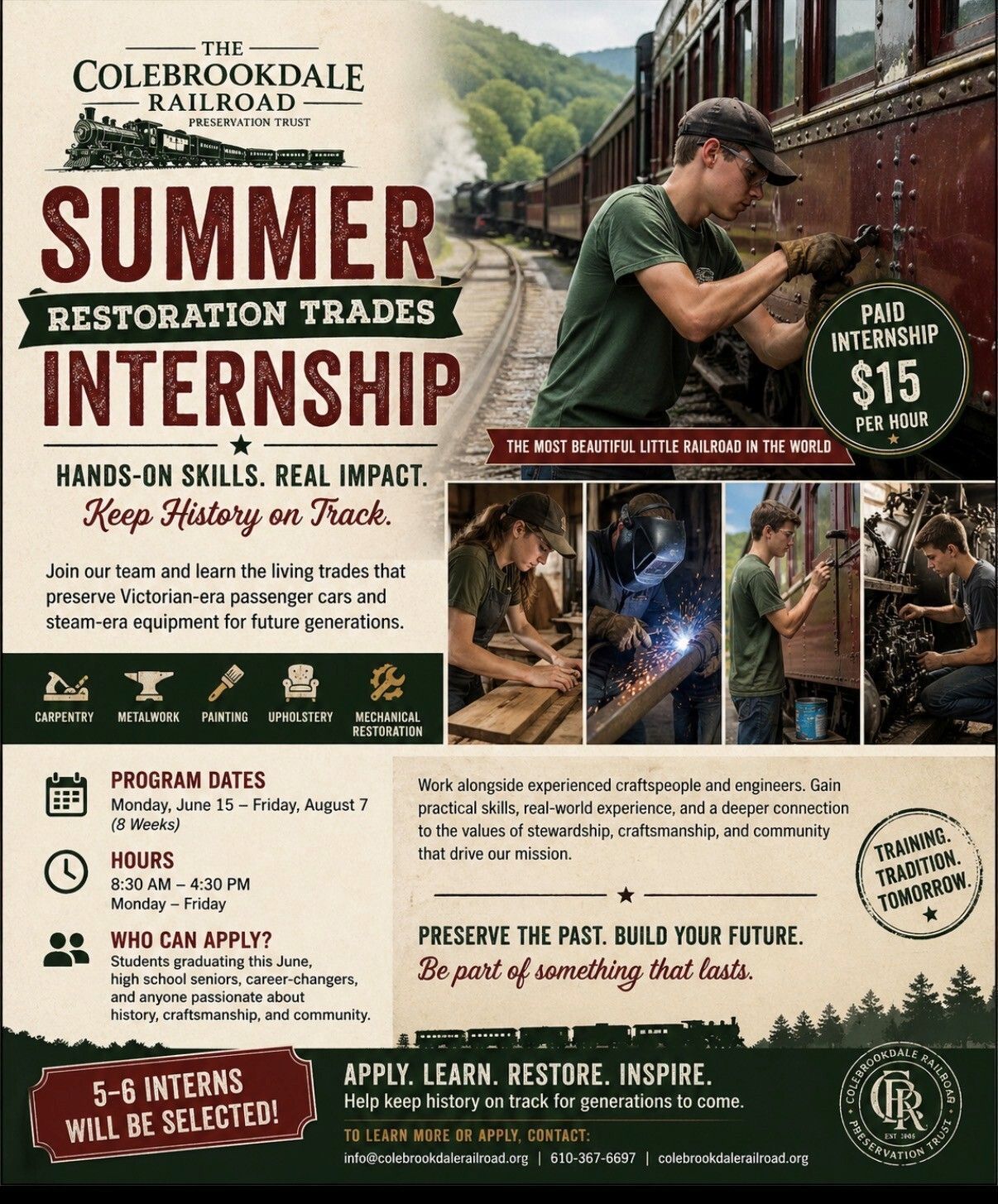 The Colebrookdale Railroad is offering a unique opportunity for those interested in history and hands-on work through its Summer Restoration Trades Internship.